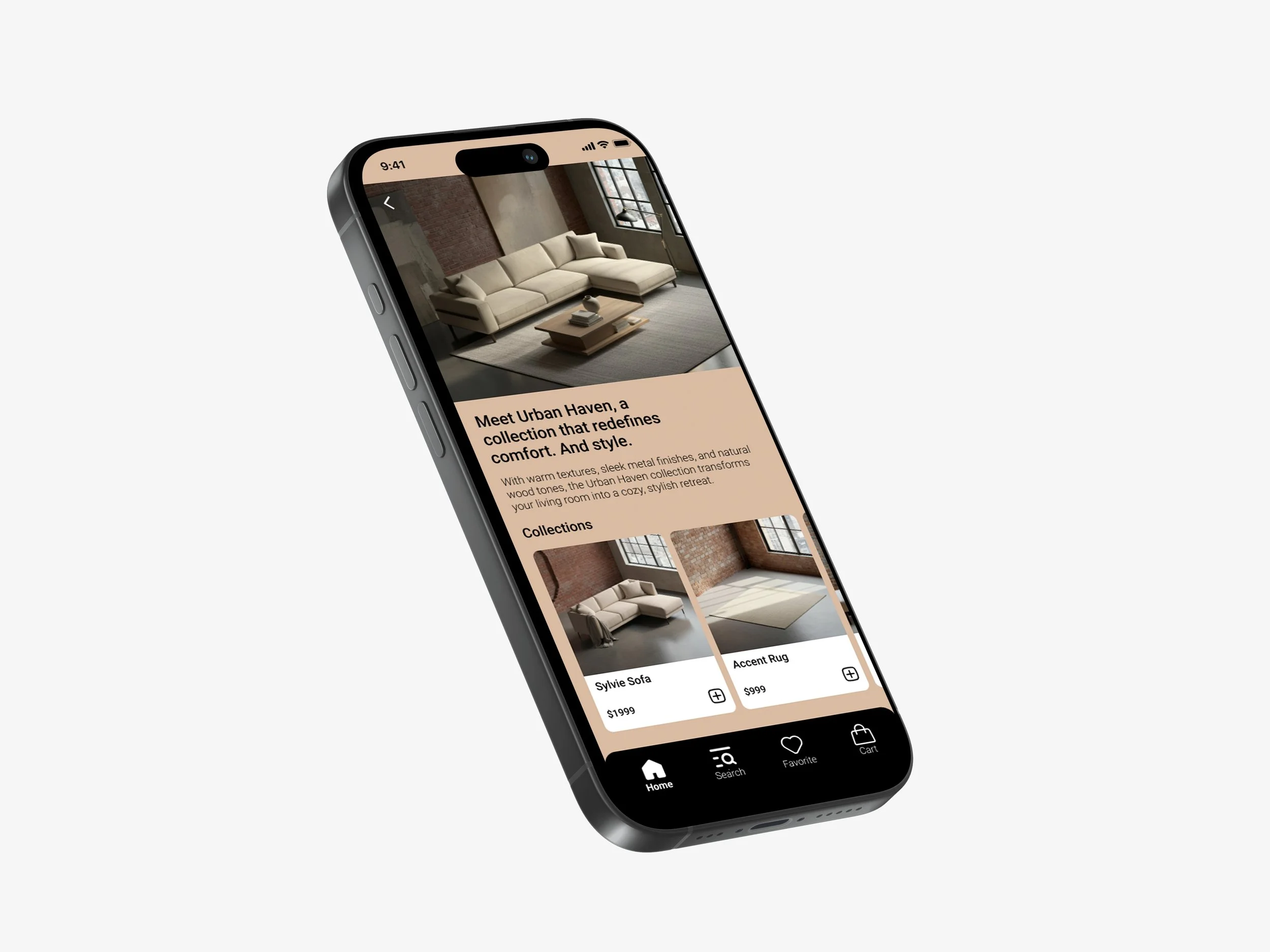 Part of my objective for this project was to build an app that fully embraced a minimal and modern aesthetic while focusing on the UI/UX design. My goal was to create a better overall experience for browsing and shopping for furniture within the app.